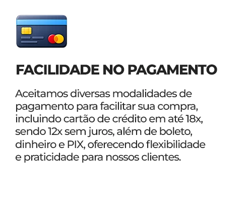 Sim! Parcelamos em até 18x no cartão de crédito, sendo 12x sem juros. Também aceitamos boleto, dinheiro e pix.